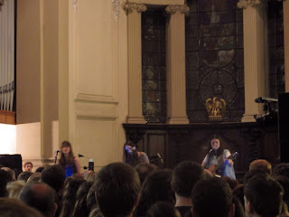 My final gig of the night was The Staves who had just finished a tour. This meant that they were in compete harmony and had reached that relaxed stage whereby it was just another audience. They played the Trinity church and the acoustics complimented their twee aesthetic. Their songs make me want to skip through fields without feeling like I'm going to be made to dance round the maypole and collide into Morris dancers (yep actually did that once in York during a Morris dancers festival , it is very noisy walking into that many bells).