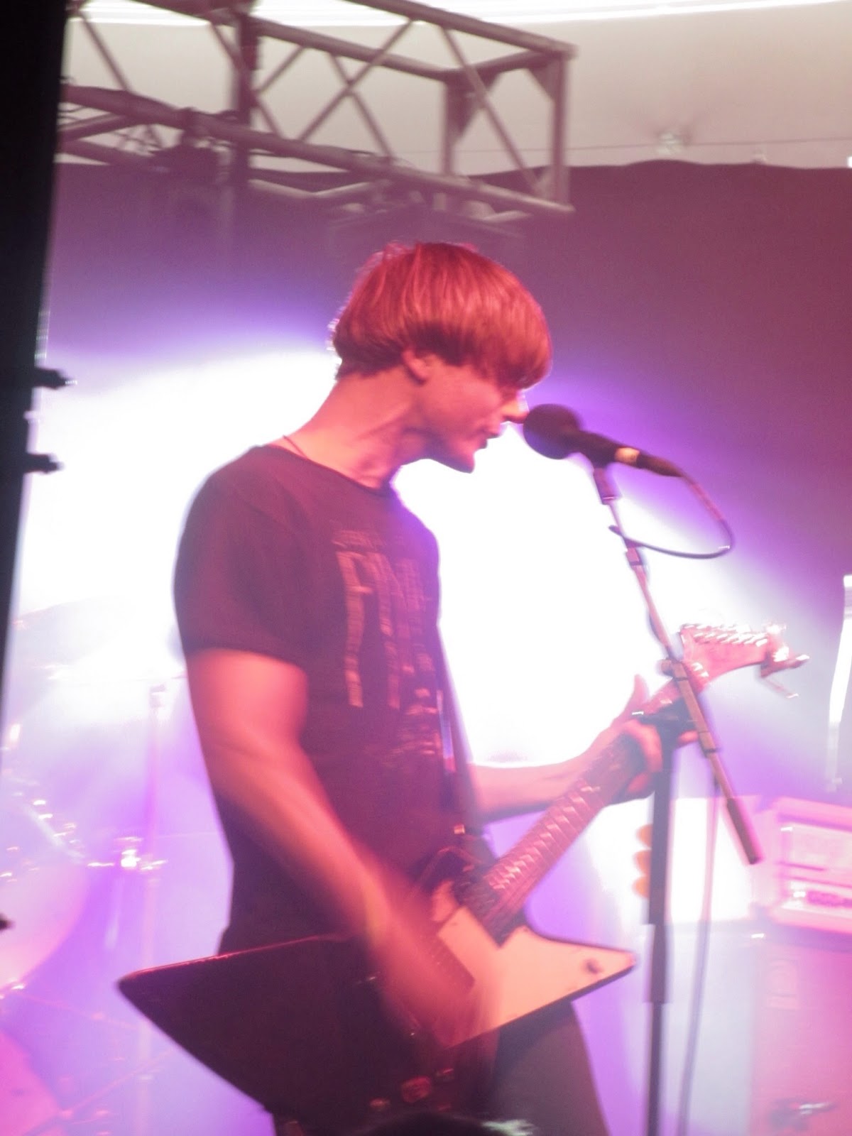 We then ambled up to the University to see Dinosaur Pile Up who are a Leeds Band I had never heard of before. They were suitably lithe and energetic but suffered from bad sound engineering which made it difficult to really get a grasp on their music. This did not stop a mosh pit from developing and they carried on in sound blitz spirit. They were very much L's target audience as she gleefully watched on, I'm not convince whether it was their music or them that she was admiring. I would like to see them again and see how they are with their own sound engineer.